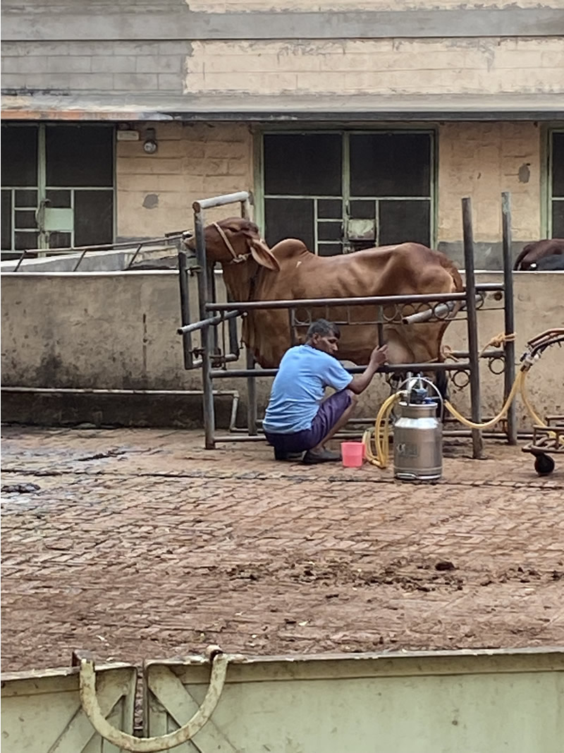 Ramakrishna lived in the 19th century; through deep meditation he realized the unity of the Hindu Gods and persuaded the different sects to stop fighting each other. His teachings are practiced in centers across the world. The Math has its own herd of milk cows.