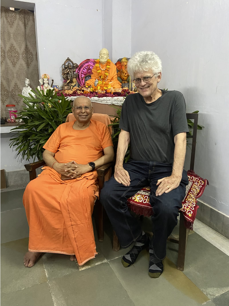 We met the friendly senior swami xxxx and I asked him about the Ramakrishna Way and how to meditate. He said that everyone wants to be happy and the way to become happy is to make others happy. Give them whatever you can that will make them happy and it will make you even happier. As for meditation, its purpose is to quiet the mind so you can live in the present. To practice, just sit quietly and silently repeat the name of your beloved or of your God for awhile, and then silently repeat OM. In the Bible, he pointed out, the first sentence says, "In the beginning was the Word, and the Word was with God, and the Word was God." The sound of the Word, he explained, was and is OM. He said that US NASA had sent a spacecraft to the sun and it had recorded a sound coming from the sun which was the sound of OM.