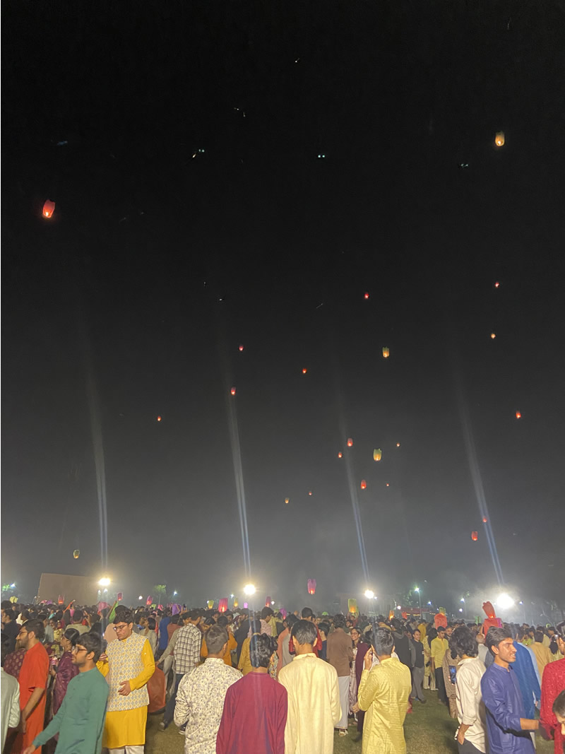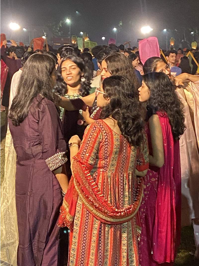 Then he took me to the IITK campus Diwali festival on a wide field. A thousand or more students and some elders gathered in their beautiful Diwali party garb- Khuta for men and Khuti for women.