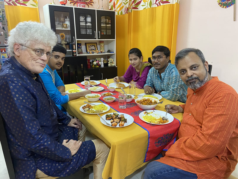 Diwali official celebration day--Oct 20. This evening my host Pradip took me to his home for a delicious dinner prepared by his multi-talented and amazingly present wife Paramita (her name is the word for the six perfect Buddhist virtues: generosity, morality, patience, diligence, meditation, and wisdom).