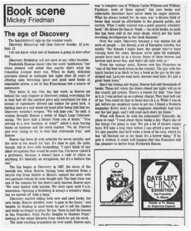 p.166 - closing of Fred Roscoe's Discovery Bookshop