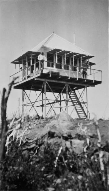 The lookout tower at Chews Ridge - with Fred on the porch